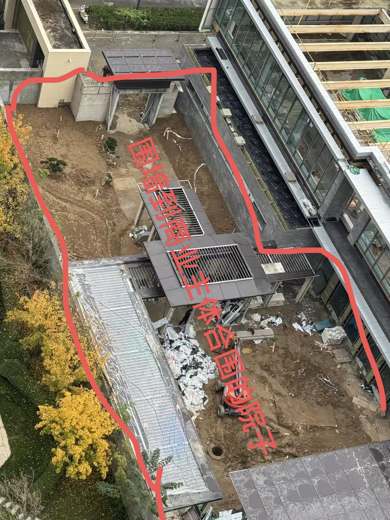 二、从总平图纸看:后院是红线内公共区域