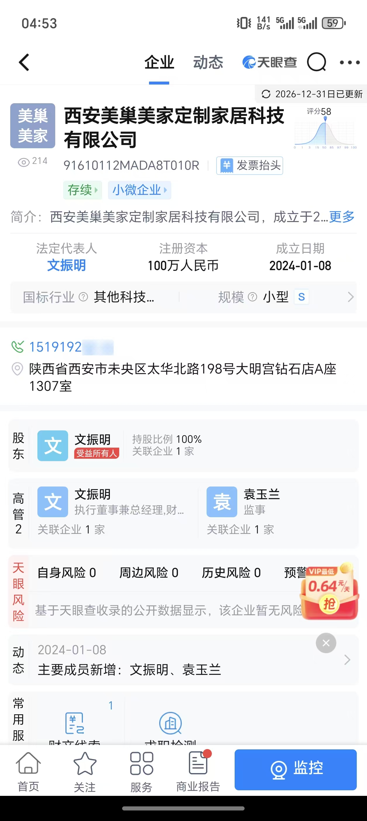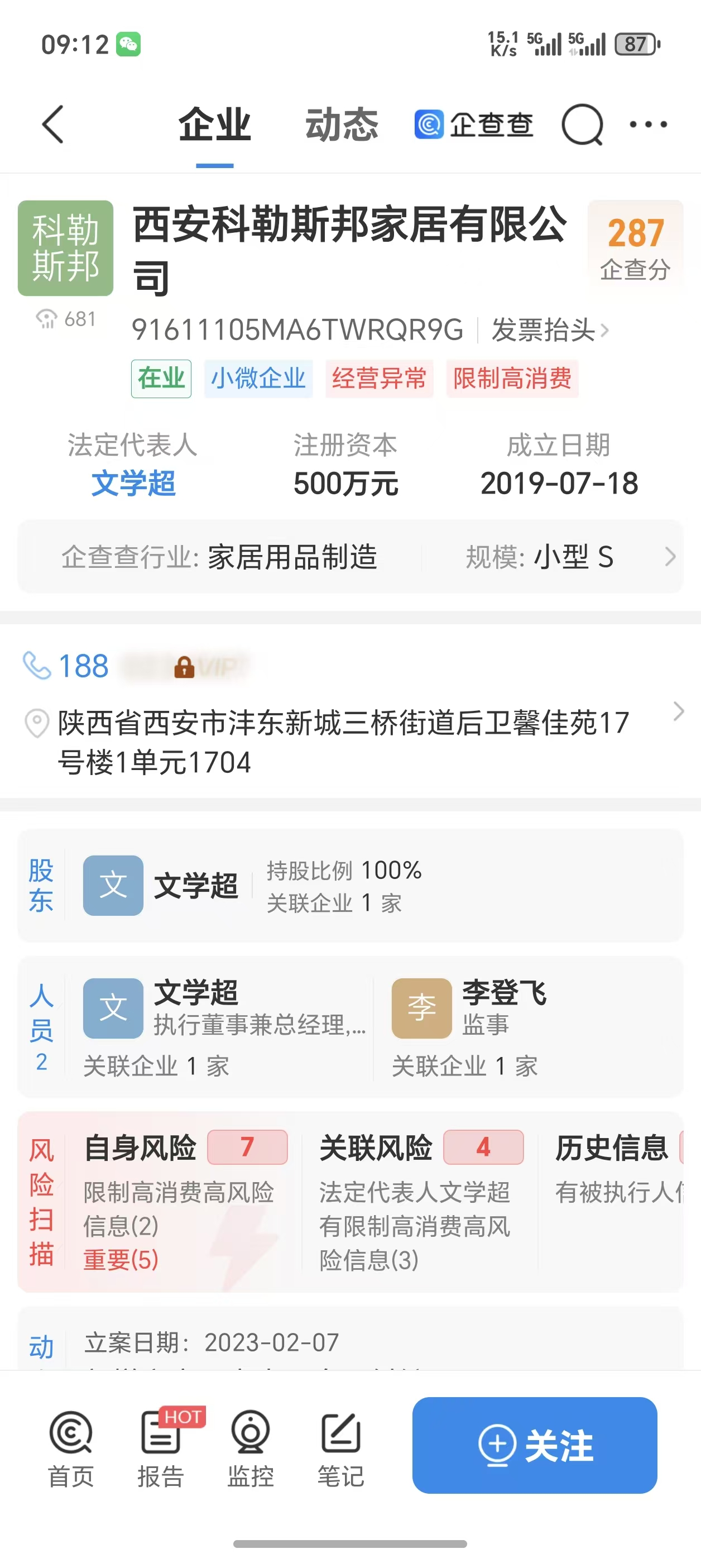 4,负责人文某本人因前期公司(西安科勒斯邦家居有限公司)与其他人有合同纠纷,被纳入失信人名单,无法新开公司。经与其现公司员工确认,营业执照上的法人从未在公司出现或者管理过该公司,公司实际操作人为文某及其妻子。