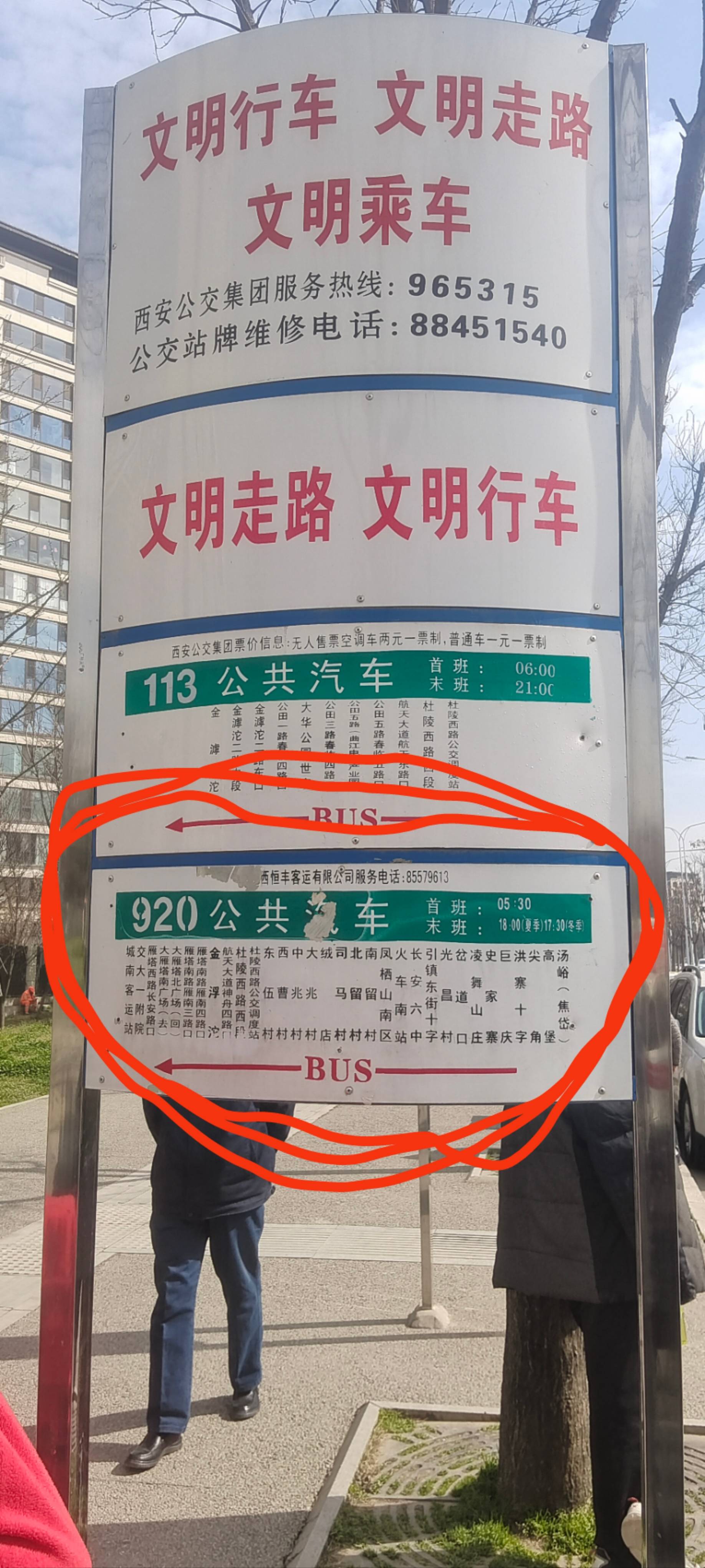 西安市920路公交从焦岱发往城南客运站方向,3月21日9点25到10点30分途径西安市胸科医院站点的两趟车,均表示不到城南客运站,其中第2趟车到达站点时我问不到城南客运站,司机说每隔4趟车才有一趟到城南客运站。我拨打029-12328西安市交通运输服务监督热线,工作人员表示不是他们的职责,让我联系12345,我问他们处理这个问题需要多久时间,工作人员说需要5个工作日。至少5个人等了一个多小时,这不是方便老百姓出行,站牌上写的清清楚楚终点站城南客运站,为啥不是每趟车都到?