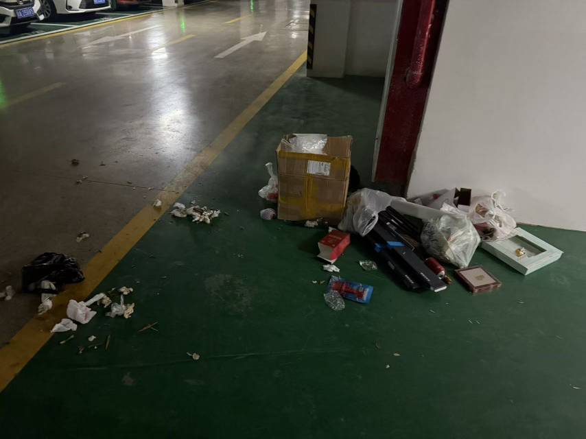 1、公区及地下车库脏乱差,垃圾堆积不清理;