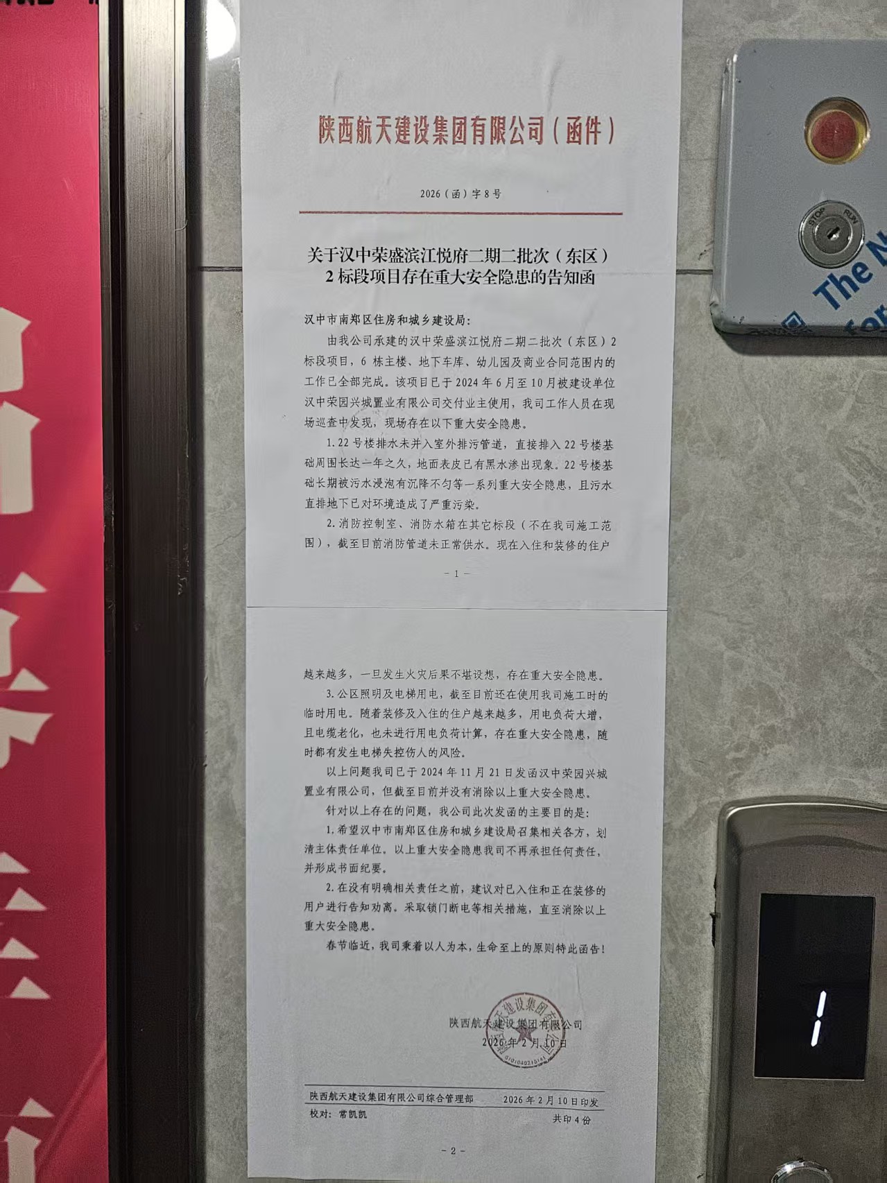 验房当天,我已对所有问题拍照、录像留存完整证据,并于4月16日正式向汉中荣盛兴城置业有限公司、荣盛滨江悦府二期建设单位发送书面告知函,明确提出两大合理诉求:一是调换同楼层合规房屋,二是全额退房并赔偿购房款利息、子女就近入学损失,同时要求开发商3个工作日内书面回复。
