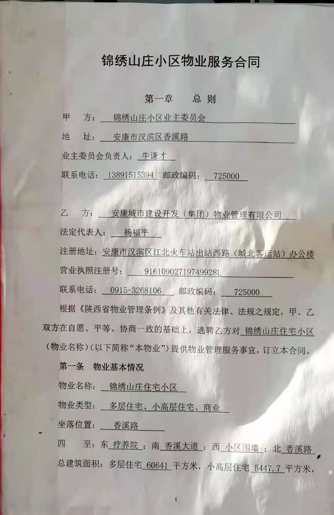 我们是安康市汉滨区新城办锦绣山庄小区的全体业主,现针对本小区业主委员会成立程序不合法、现业主委员会主任牛谦才为物业公司指定、业主委员会成员及主任与安康城市建设开发(集团)物业管理公司勾结涨物业费一事向贵部门放映,请求给予解决。