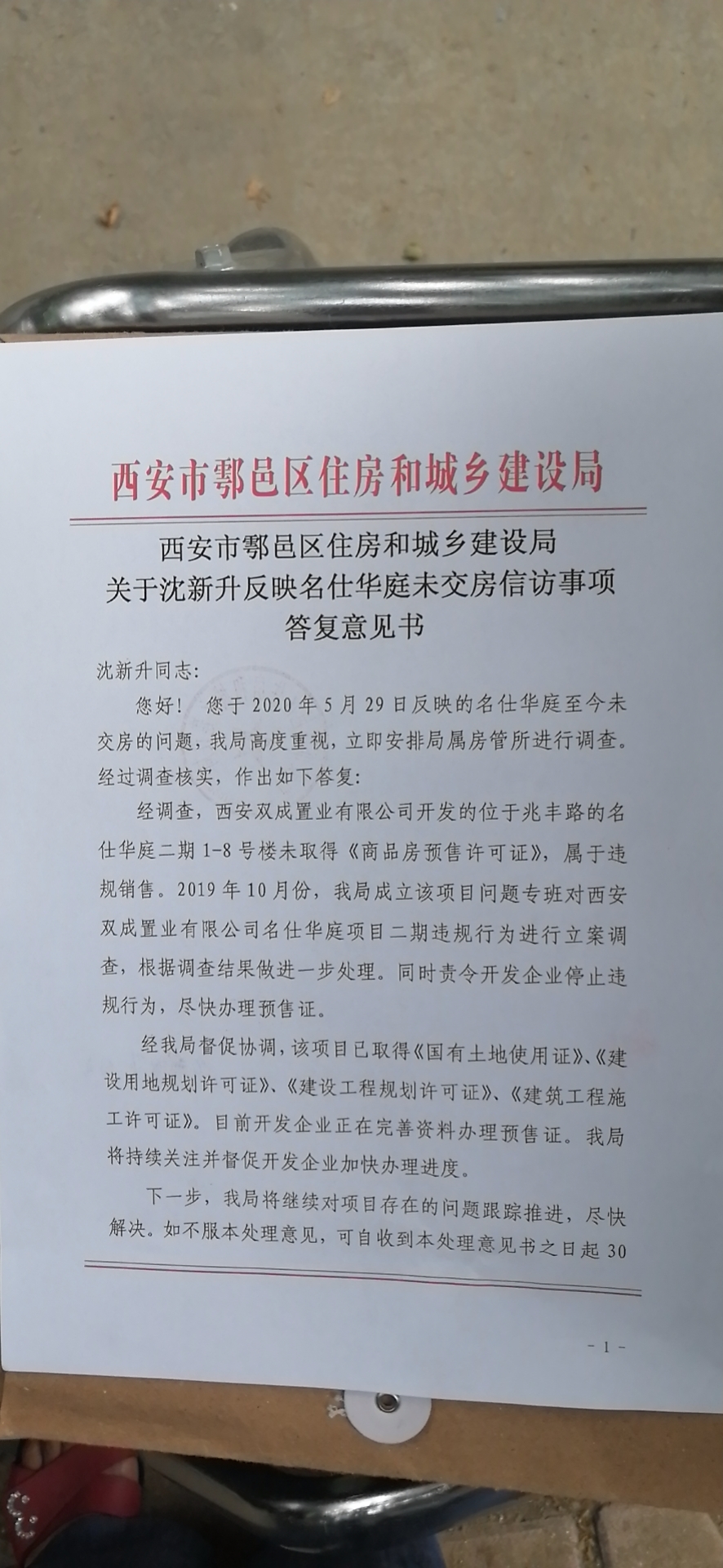 购置鄠邑区名仕华庭二期住宅,4年多无法交房,更有业主13年购房至今还未入住,2020年以来业主上方10多次,当着政府相关部门开发商多次给出书面承诺,各种理由瞒哄业主,欺骗政府,事情至今毫无进展,业主住房无望,望相关部门重视解决民生问题,替群众做主。