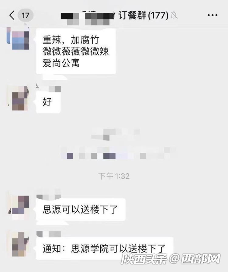 “思源学院可以送楼下了!通知:思源学院可以送楼下了!”3月15日下午一时许,在一个校外餐饮订餐群内,群主激动地发了两遍该通知。