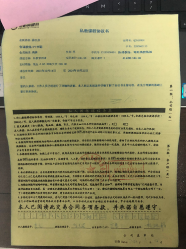 第二天才拿到合同,看到条约里全是对消费者不利的规定,而商家一点责任都不用承担!并且签订合同时未对我进行说明,只是催促签字,格式条款当属无效。根据《中华人民共和国消费者权益保护法》《民典法》《陕西省消费者权益保护条例》等法律法规的规定,零距离健身房利用格式条款免除自己责任,限制和排除消费者变更合同权利,侵害我们合法权益,免除经营者对提供的商品或者服务依法应当承担的保证责任。私教课是消费者和健身房之间约定的服务,应遵循经营者应当承担包换、包退等责任!
