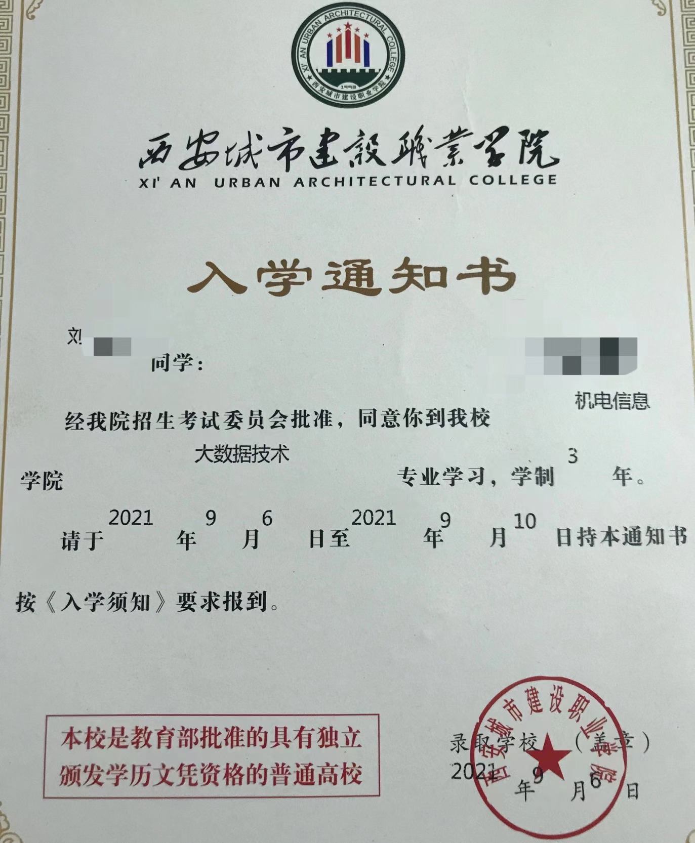 领导,您好!本人参加了2021年陕西省高职扩招,当时志愿专业1填的:大数据技术、专业2填的:计算机应用技术、服从调剂专业填的:数字媒体技术,现已被西安城市建设职业学院大数据技术专业录取并发放入学通知书,但是在学校注册之后学校在未事前征求本人意愿的情况下,擅自强制把我的专业变更为学校经济管理学院的电子商务专业,这种违规操作对学生极度不负责任。目前本人从事计算机相关岗位的工作,这会严重影响个人日后的人生规划和今后专升本。希望各位领导督促解决,非常感谢…