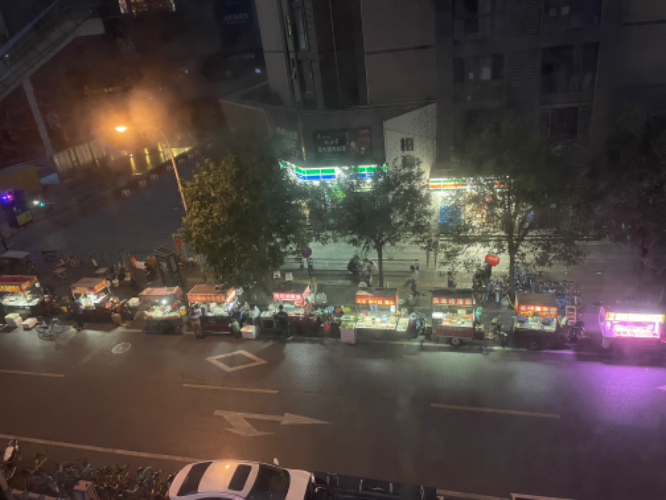 从今年4月份开始,中贸广场临近中贸街附近陆陆续续在晚上10点半以后就出现了很多小吃摊,晚上11点几乎就摆齐了,营业至凌晨5点,设有小桌椅供客人露天吃饭,开在两旁居民楼中间,噪音扰民。希望能够由上级领导督促碑林区市场监督管理或者是城管部门还周围居民相对安静的生活环境,迁移这些摊贩远离居民区。