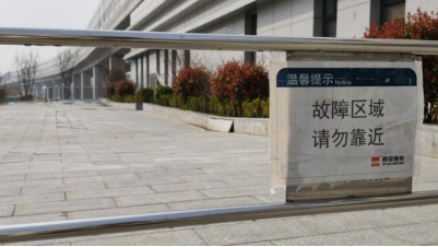 3月24日,记者根据刘先生的反映来到西安地铁10号线杨官寨站C出口处,看到外面有两处围挡,上面挂有“故障区域 请勿靠近”的提示牌。其中一处围挡位于C出口往南约50米处,路面有不同程度的凹陷。