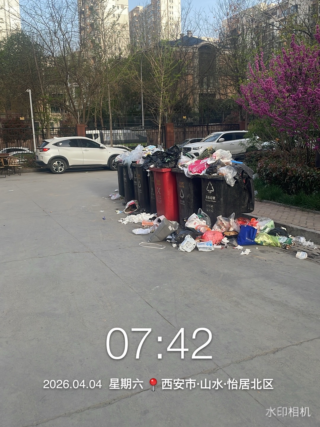 西安山水怡居小区物业停止部分楼栋垃圾清运 垃圾持续堆积