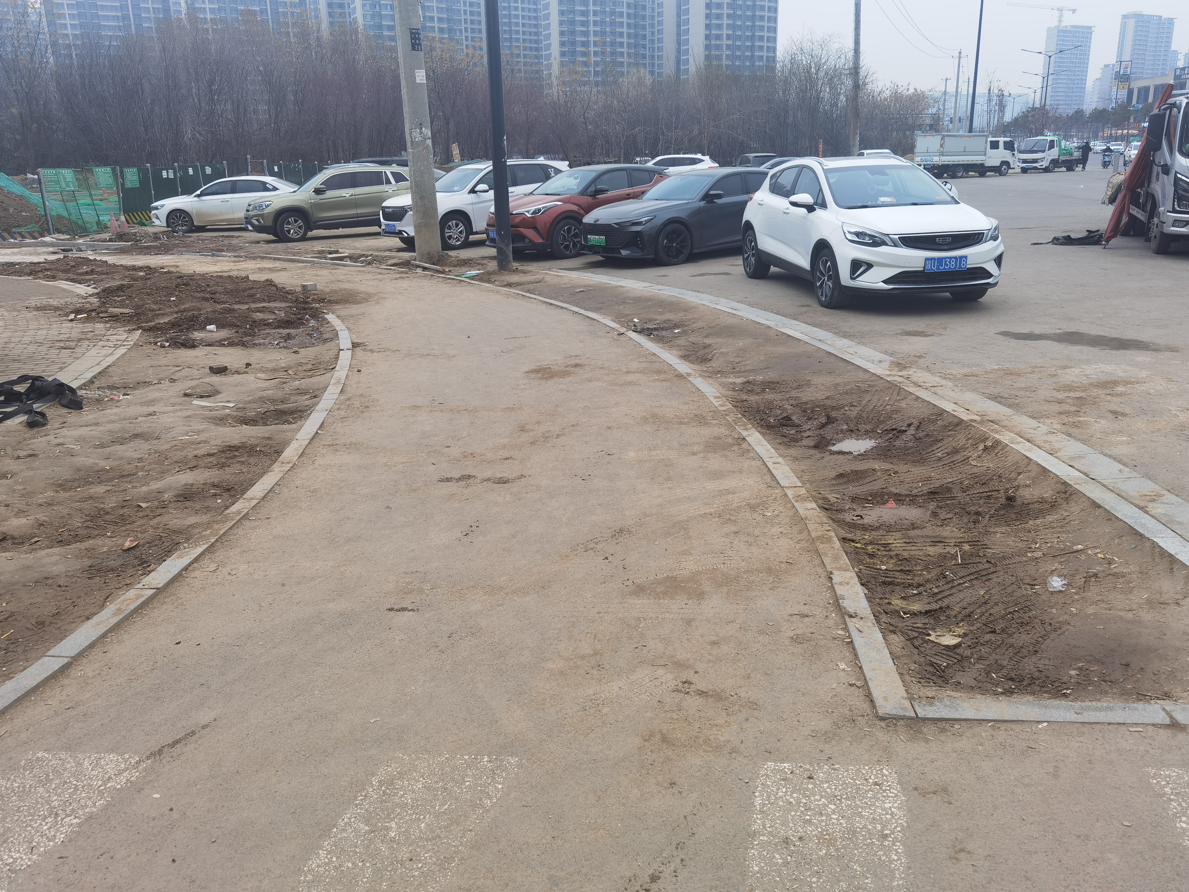 周边道路没有安装止车石,机动车辆可以从路口开到非机动车道停放,有些绿化带区域已被碾压损坏,道路受损,严重影响周边行人通行。请相关部门尽快完成道路建设,完善道路设置。
