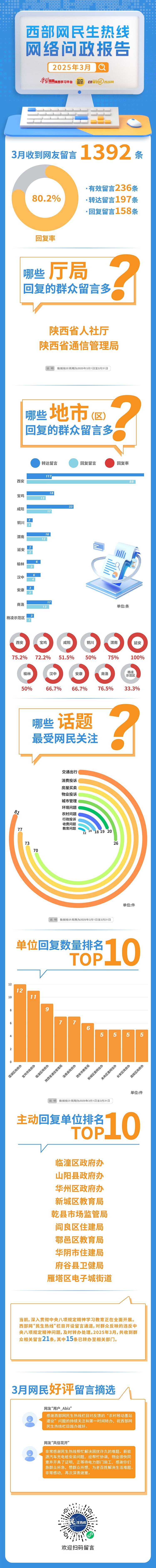 2025年3月陕西哪些地市回复群众留言最多?哪些领域投诉最受群众关注?哪些单位及时回复了网友疑惑?西部网民生热线3月网络问政报告发布,数说网上群众工作。